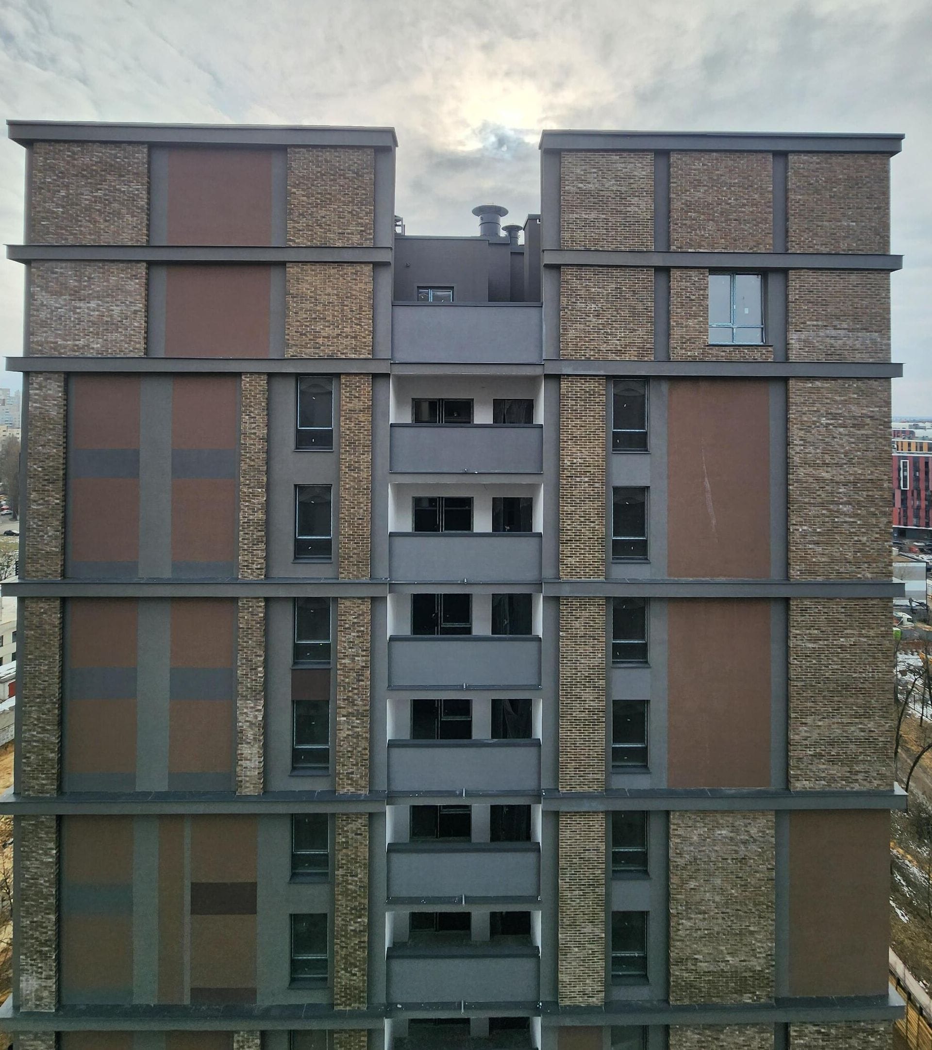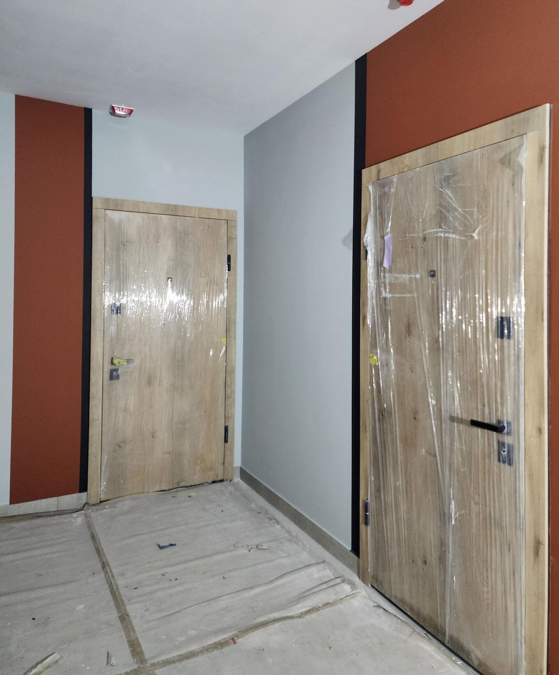 Monolithic works fully completed, roofing installed, masonry work on external, inter-apartment, and interior walls finished.